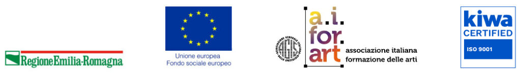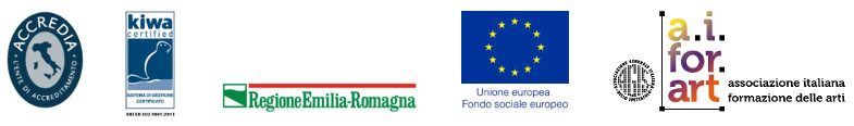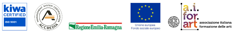 Regione Emilia Romagna - Unione Europea, Fondo Sociale Europeo | Direzione Generale per le Politiche per l'Orientamento e la Formazione | Accredia - L'Ente di Accreditamento | Kiwa certified - Sistema di gestione certificato - UNI EN ISO 9001:2015 | Associazione Italiana Formazione delle Arti.